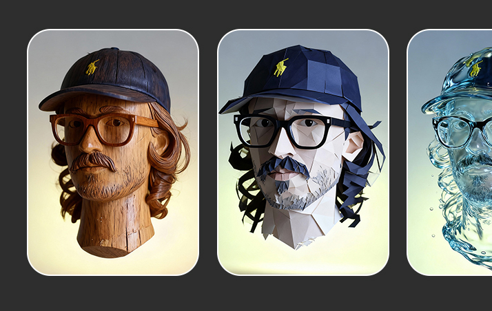 مشاهده ویدیو در اینستاگرام Image: Seedream Video: Kling Paper Photorealistic floating head sculpted from folded and layered paper modeled after the reference: preserve his exact facial features, hairstyle, mustache, stubble, black framed…